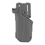 With its streamlined thumb-activated retention, the T-Series L3D keeps your firearm at the ready while maintaining total security. Thanks to a drawing motion that operates off of the Master Grip Principle, you’ll be able to get into the fight under even the most stressful of circumstances. A combination of reinforced outer polymer and smooth, sound-dampening, hydrophobic lining ensures your T-Series will perform no matter the elements and situation. As an added measure of security, the L3D also features a strap across the back of the firearm. Includes Jacket Slot Belt Loop attached to holster.
