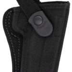 Bianchi’s high ride holster with a closed muzzle that is ideal for field, hunting and casual carry. The AccuMold construction protects the pistol even under the harshest conditions. The 7000 has a forward cant of 10 degrees that adds in both comfort and ease of presentation. This holster also features a 1.75″ injection molded belt loop and a sleek front strap closure incorporates the Adjust A Strap feature. Fits Browning Buck Mark 5.5″; Ruger MK I, MK II Target 5.5″; S&W 422 5.5″.