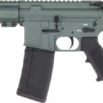 Built with an alloy frame and polymer grip, the pistol sports a green Cerakote finish throughout. The 7-inch M-LOK aluminum handguard provides mounting flexibility, while the M4 feed ramps ensure reliable feeding. Sights are not included, but the upper receiver features a Picatinny optic footprint for accessory mounting.