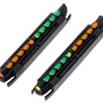 The Hi-Viz Two-In-One is a magnetic fiber optic front sight that pairs green and orange LitePipes in a single unit. Rotate the sight on your rib to switch between colors instantly. Each Two-In-One sight includes one orange/green round pipe sight and one orange/green triangular pipe sight for quick configuration changes. The Narrow Model (TO300) accommodates ribs measuring 0.218″ to 0.328″ (7/32 to 5/16) (5.5mm to 8.3mm).