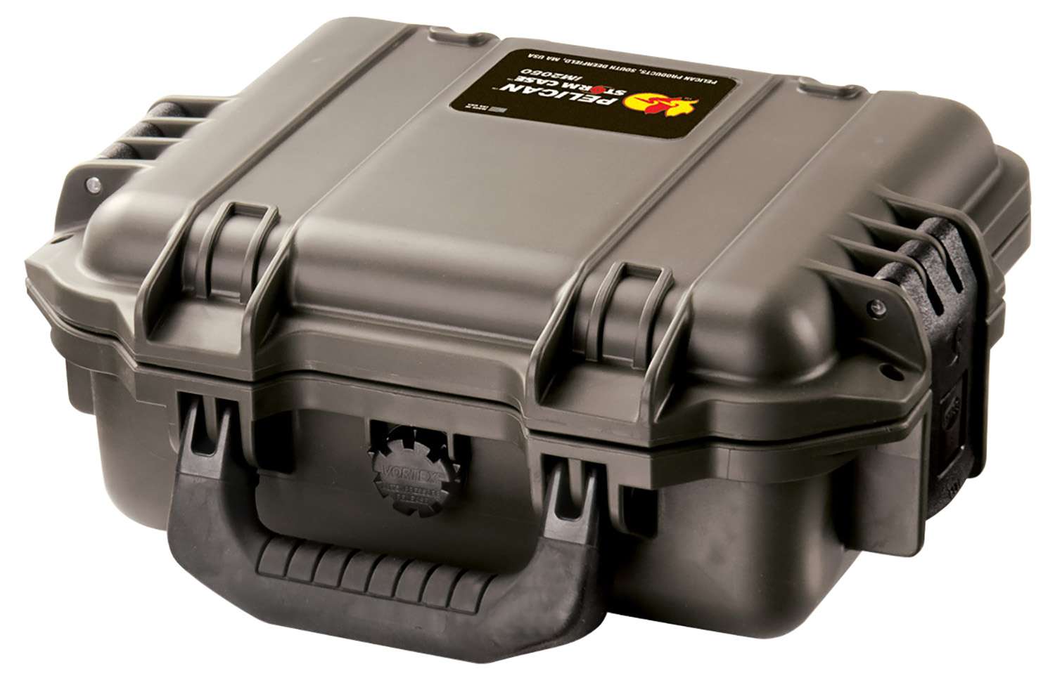 Pelican’s Storm Case has a unique Press and Pull latch that locks automatically, but opens with a light touch. Featuring two press and pull latches, a double layered soft grip handle, two padlockable hasps and a Vortex valve. Made in the USA.