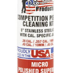 Pro-Shot cleaning kit features a rod, patch holder, patches, jags, brushes, and solvents. The multi-caliber cleaning kit works great when it comes to cleaning your handguns after a long day at the range. This kit works with .38, 9mm, .40, 10mm, and .45 caliber handguns.