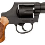 The M206 Spurless Revolver is ideal for self defense and concealed carry with a 2″ fully shrouded barrel and spurless hammer, fixed front sight, and smooth channel frame cut rear sight. It’s designed to perform when it counts and also comes equipped with a checkered wood grip and parkerized finish.