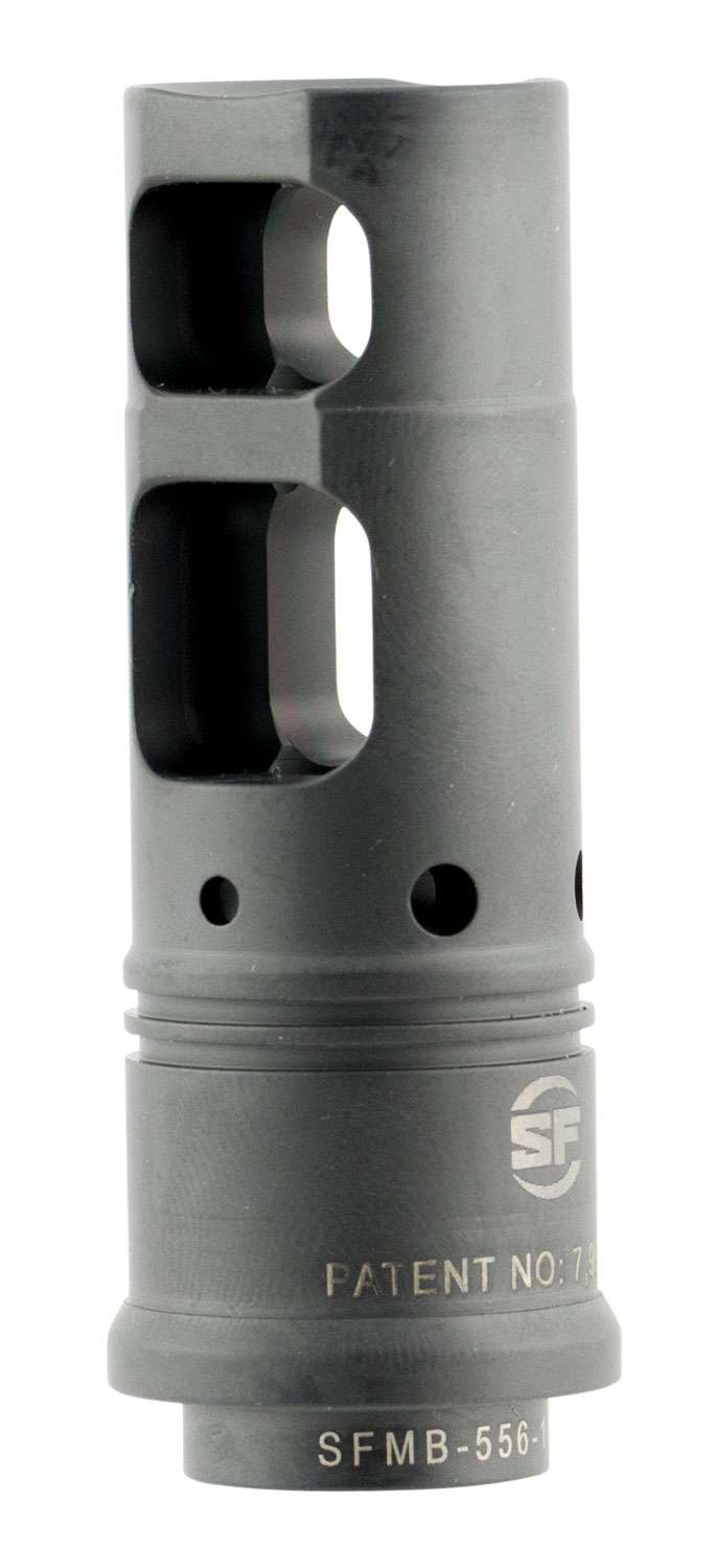 The advanced SureFire SFMB-338-3/4-24 muzzle brake, which fits 8.60 mm (.338 caliber) rifles with 3/4-24 muzzle threads, greatly reduces both recoil impulse and muzzle rise and features neutral porting that loads bi-pod legs evenly. Its patented Impulse Diffusion design minimizes side blast and rear-directed concussion effects. The SFMB-338-3/4-24 also serves as a rock-solid mounting adapter for .338 caliber SureFire SOCOM Series Fast-Attach suppressors.