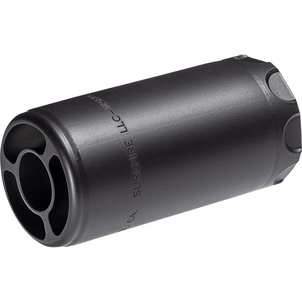 The SureFire Warden Direct Thread Blast Regulator for 5.56 and 7.62 mm weapons is engineered to direct the concussive blast of the fired round forward of the weapon system without venting gas to the side as seen with standard muzzle brakes. This aids in reducing the overpressure felt by others immediately to the left and/or right of the shooter’s firing position. It also limits any dust signature from the weapon when fired from a prone position. The Warden enhances the refined appearance of any weapon with a 1/2-28 or 5/8-24 threaded barrel protecting the barrel’s exposed threads from damage or fouling in lieu of a flash hider or muzzle brake. . Unlike sound suppressors Wardens are not NFA devices and are available wherever SureFire products are sold without any of the restrictions associated with suppressors.