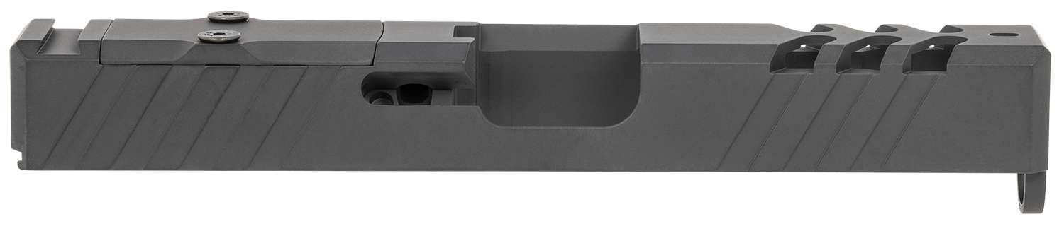 The optics cut is precisely machined to accommodate a Trijicon RMR mounting system. Installation hardware is provided, including a slide cover plate and screws. Note that the channel liner is not installed or included with this component.