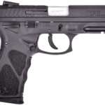 The Taurus TH series features hammer-fired, SA/DA with a manual safety and an ergonomic, textured polymer grip/frame with an integrated accessory rail. The matte black carbon steel slide has front and rear drift adjustable Novak sights. The full-size TH pistol has a 4.25″ slide for an OAL of 7.72″ and interchangeable backstraps.