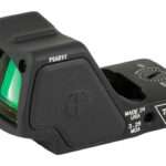 The Trijicon RMR HD is an innovative red dot pistol optic specifically designed for the evolving needs of Law Enforcement and the Military. Built on the foundation of the Trijicon RMR Adjustable LED model, the RMR HD features the same patented housing shape made from forged aluminum, robust electronic system, and quality lenses. Adding a long-lasting, top-loading battery, larger window, an innovative forward looking light sensor, multiple reticle options, market leading illumination adjustability, and it’s clear the RMR HD is designed and built for duty use. The innovative forward looking light sensor gauges the brightness at target in auto mode and adjusts reticle brightness to be effective in any lighting scenario. A new reticle allows you to switch between a complex reticle or single crisp dot, both of which include a new super bright setting and an additional night vision setting. The RMR HD also allows the operator to adjust the Auto Illumination as well as the dot/circle contrast. Additional features include larger, more tactile buttons, new adjusters with greater audible and tactile feedback, and an expanded field of view. Offering the same footprint as the RMR and designed to fit most existing optics-ready duty holsters, the Trijicon RMR HD is ready for those needing a feature-rich optic with high performance and ultra-reliability