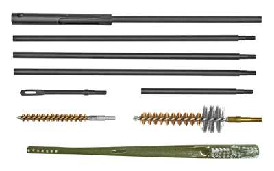 UTG complete AR-15 cleaning kit will easily stored in the A-2 buttstock or the included two compartment lightweight nylon bag. The kit is comprised of five piece rods (includes loop), adaptor, bronze bore brush, chamber brush, dual-ended nylon brush, oil bottle and cleaning cloth. Pouch includes belt loop and Alice clip for attachment to belt or web gear. Standard 8-32 threads for any compatible components on the market.