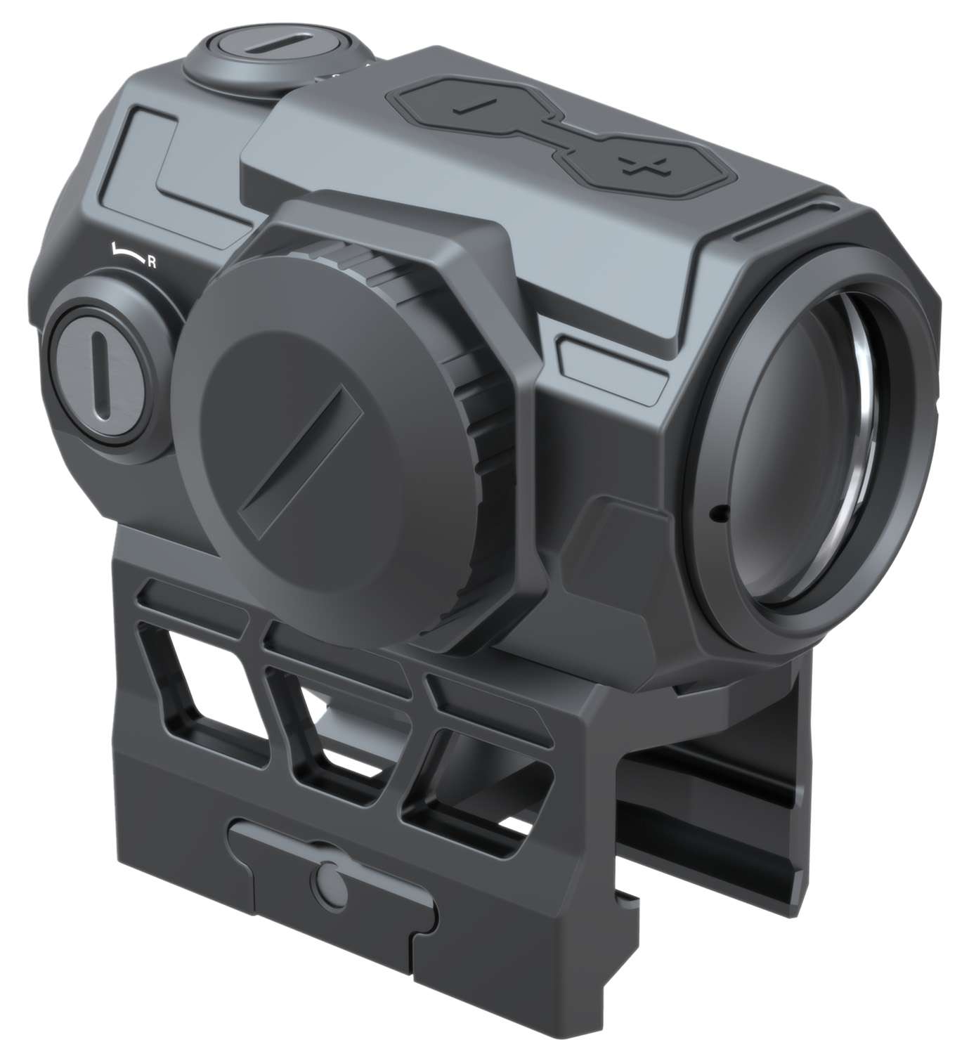 Fully multi-coated optics deliver superior light transmission, while waterproof construction and parallax-free operation ensure reliable performance in the field. Windage and elevation adjustments are available in 1 MOA increments for precise zeroing. The CR2032 battery powers the sight with a 30,000-hour runtime, and the push-button ECR INSTANT-ON switch with top-mounted controls enables quick activation when needed.