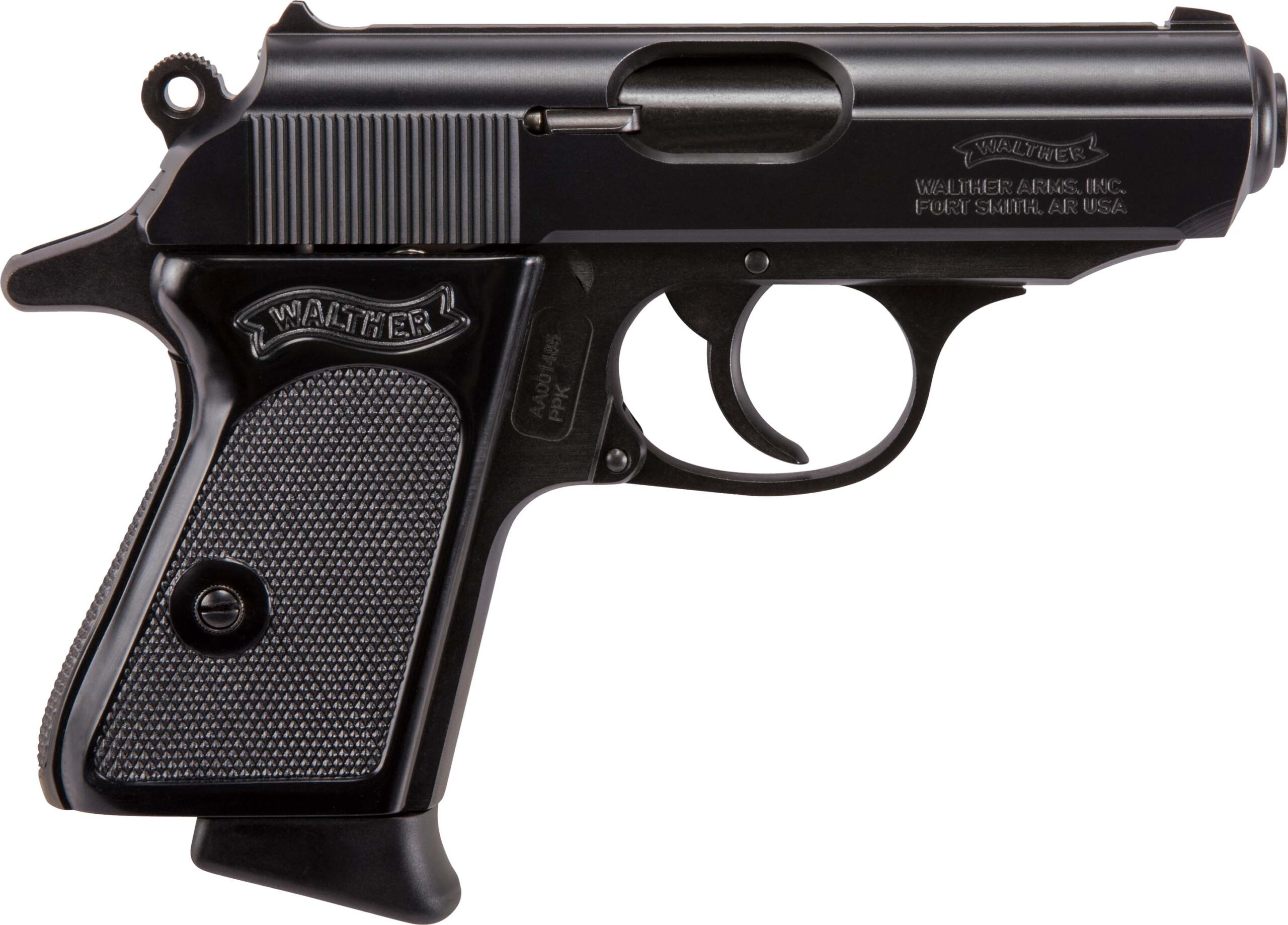Walther PPK .32 ACP—the iconic concealed carry pistol that pioneered an entire category, now with reliable blowback operation and a decocker safety for secure carry. Compact 3.3″ barrel, double/single action trigger, 6-round capacity, steel construction, includes two magazines.